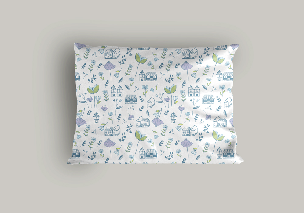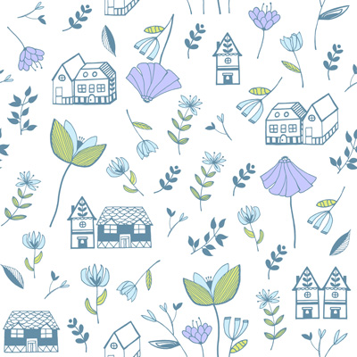 여러집과 꽃과 식물을 손그림으로 그려서 작업 후 포토샵에서 후작업을 거쳐서 파스텔 톤으로 작업 마무리.