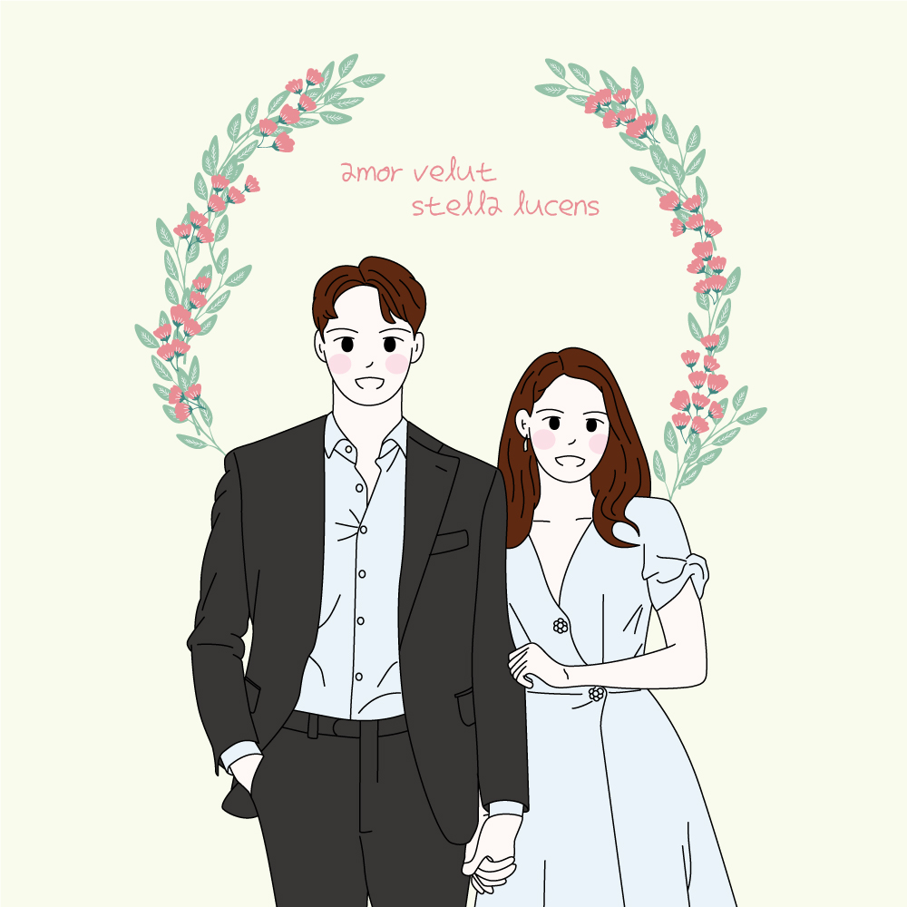 웨딩사진을 포토드로잉으로 그려서 청첩장에 넣어도 좋을 것 같아요.