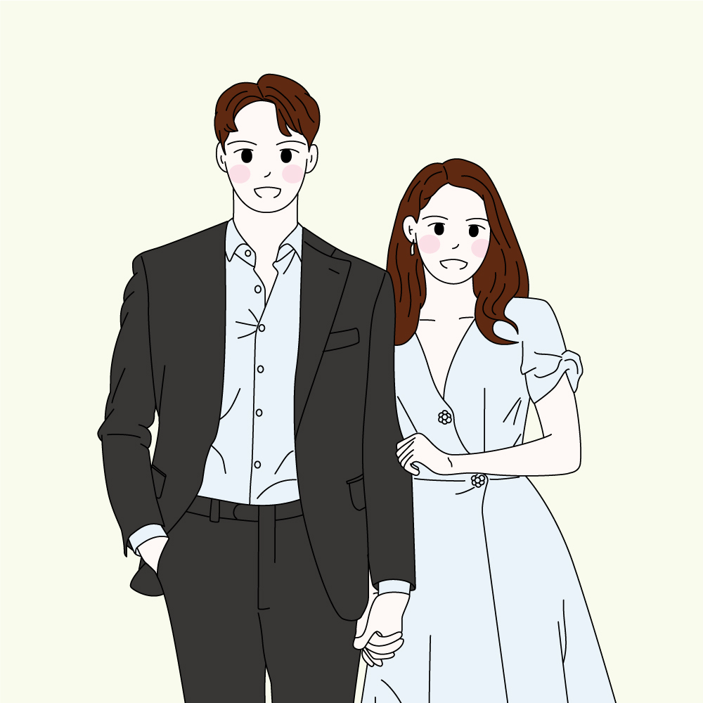 행복한 모습이 담긴 커플사진, 웨딩사진을 포토드로잉, 라인드로잉으로 그렸어요.