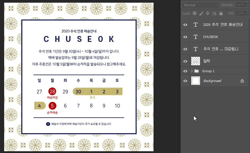 제가 디자인한 패턴으로 만든 추석 팝업 배너입니다.