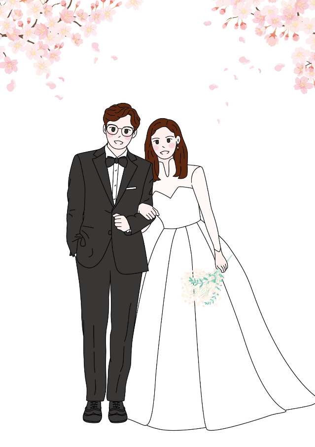 웨딩사진이 없었지만 원하시는 포즈와 얼굴을 같이 보내주셔서 그린 포토드로잉